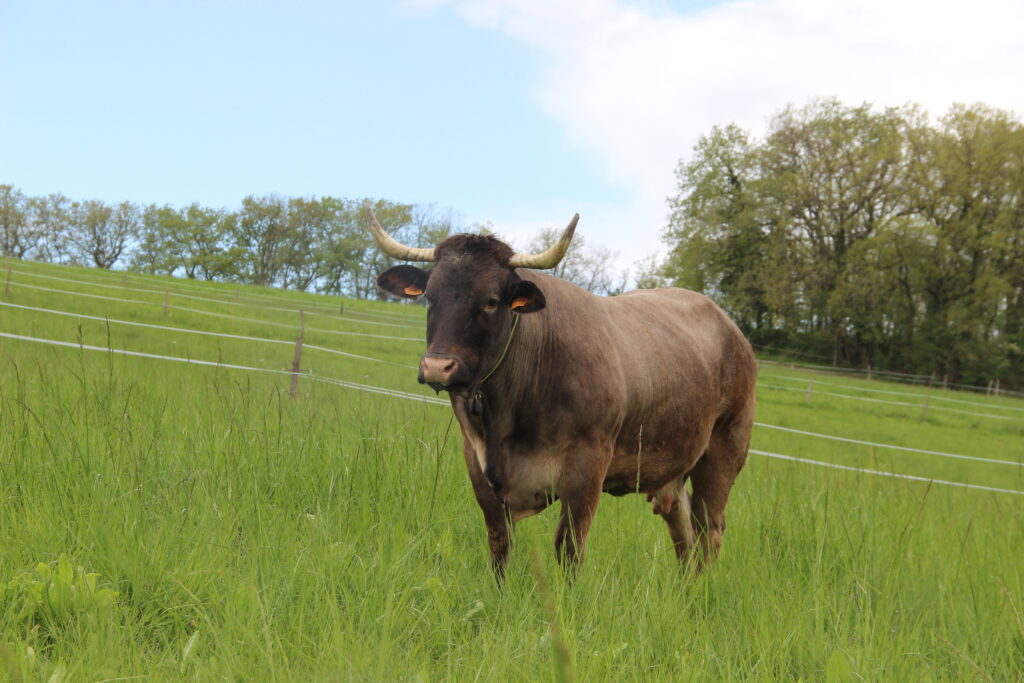 Fabien Constantin single-handedly took over the family farm, which had previously been dedicated to Holstein dairy production. With a BTS and ten years’ experience as a technician at the Lot et Garonne Chamber of Agriculture, he decided to convert the herd to suckling cattle, with a clear objective: to sell his animals directly. He chose the Bazadaise breed, which runs counter to the Blonde d’Aquitaine widely used in the region, for its uniqueness and the quality of its meat.